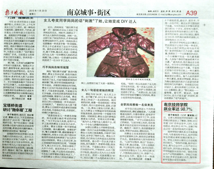 《扬子晚报》A39版—星空官方web版入口就业率达98