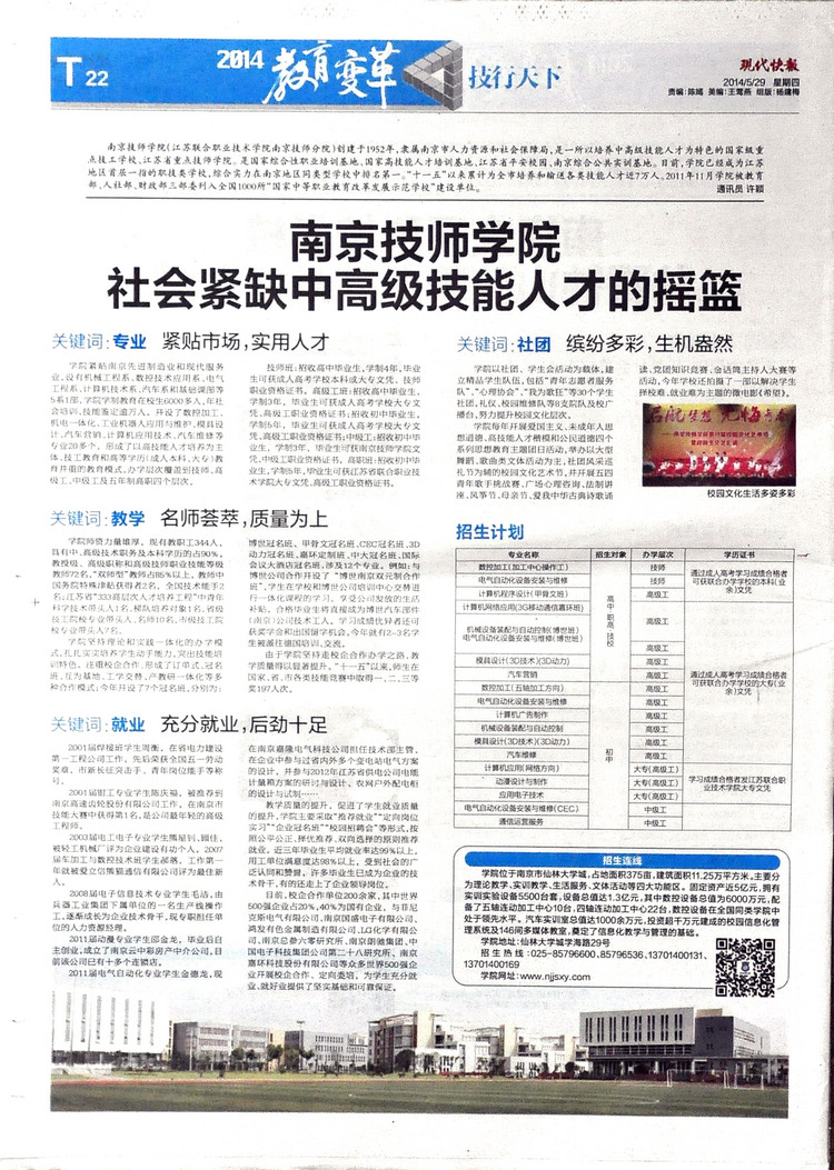 《现代快报》T22版—星空官方web版入口社会紧缺中高级技能人才的摇篮