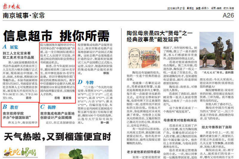 《扬子晚报》A26版—星空官方web版入口开办“中德国际班”