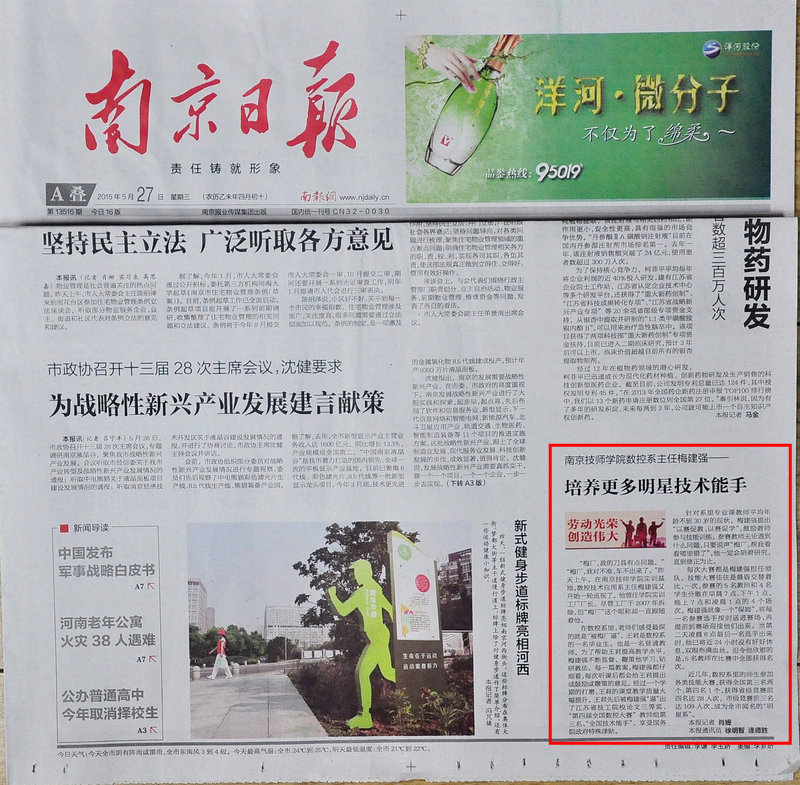 《南京日报》A叠——星空官方web版入口数控系主任梅建强 培养更多明星技术能手