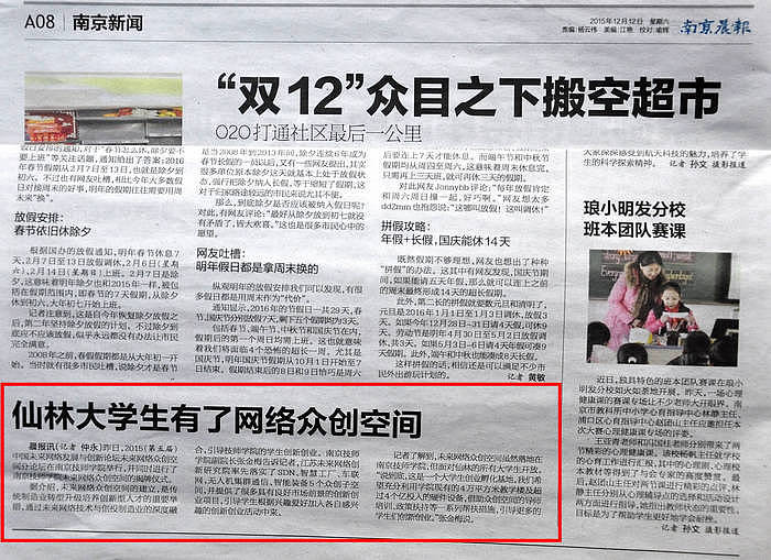 《南京晨报》A08—仙林大学生有了网络众创空间