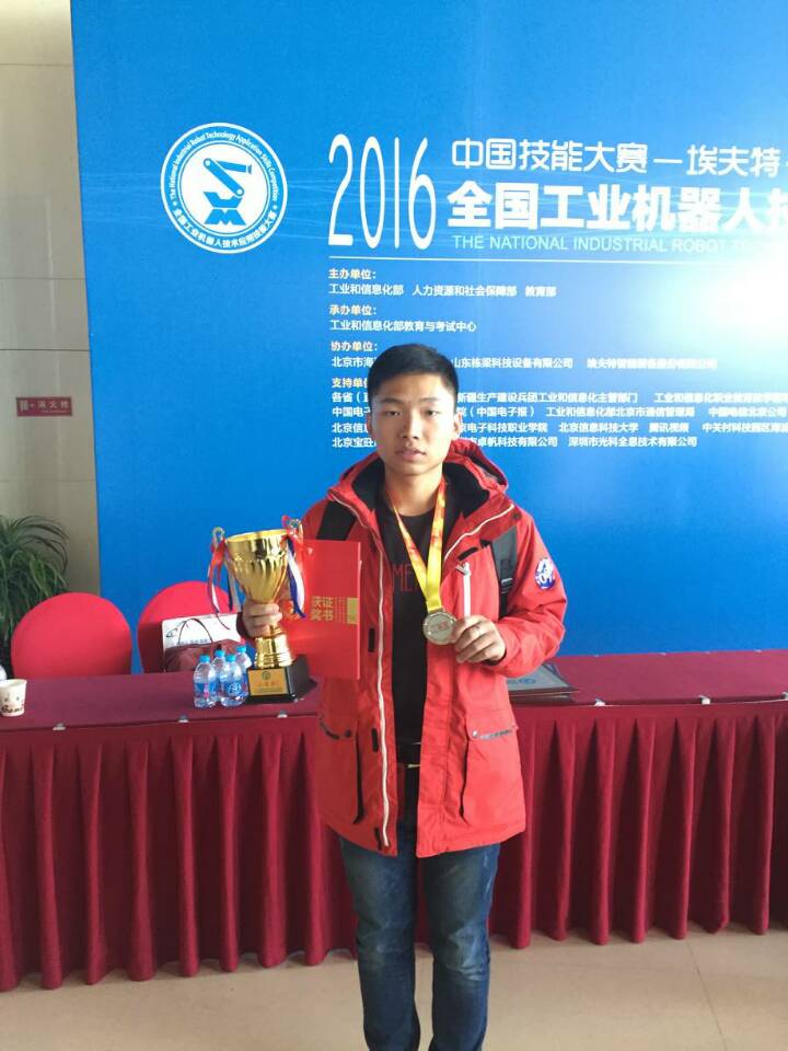 2016年11月25-27日,在徐才广老师指导下,我院电气工程系2011级技师班张靖同学,参加由工信部、人社部、教育部联合举办的“2016年中国技能大赛——全国工业机器人技术应用技能大赛”,从参赛的25个省选派的136名精英选手中脱颖而出,喜获二等奖。