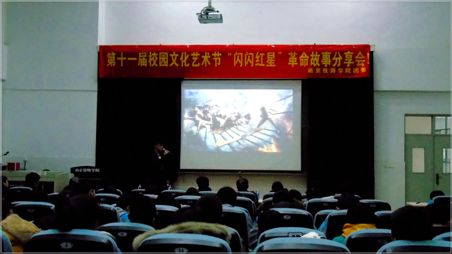 2016年12月13日是第三个南京大屠杀死难者国家公祭日,在这个特殊的日子里,我院团委组织举办第十一届文化艺节“闪闪红星”革命故事分享会,院组织人事处丁辉副处长、学生工作处孙京宁副处长、院团委胡珍霞书记、杨芳副书记,语文教研组组长史香云老师担任比赛评委。