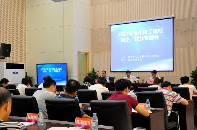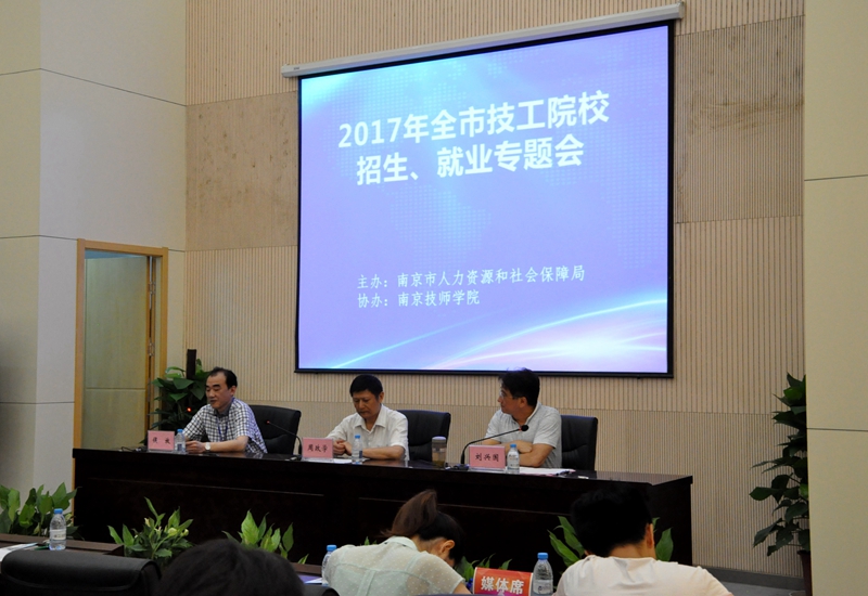 会上,南京市人力资源和社会保障局巡视员周政学发表重要讲话,对技工院校招生就业工作寄予厚望;人力资源开发处处长刘兴国介绍了全市技工院校发展及招生情况,并强调工作措施及要求。