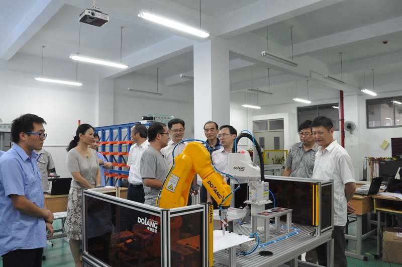 2017年8月23日,中电熊猫集团党委副书记钟友祥、熊猫股份副总经理、熊猫装备总经理刘坤、中电熊猫集团人力资源部总监薛玉恒等一行4人,来院慰问熊猫集团即将参加全国工业机器人和钳工技能竞赛的选手。市人社局巡视员周政学,学院党委副书记、副院长张金梅,副院长侯放等领导陪同钟书记慰问竞赛选手并参观我院实训场地。