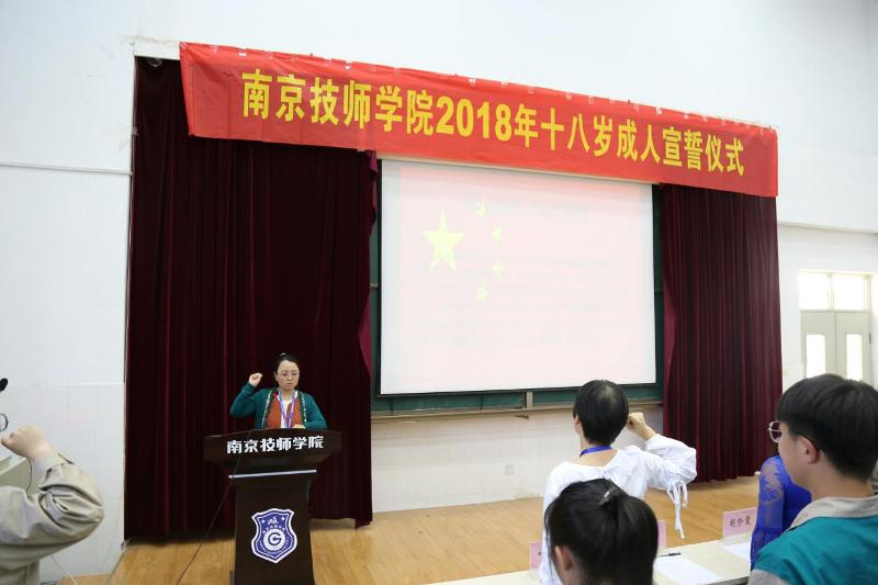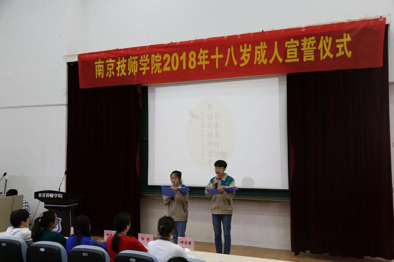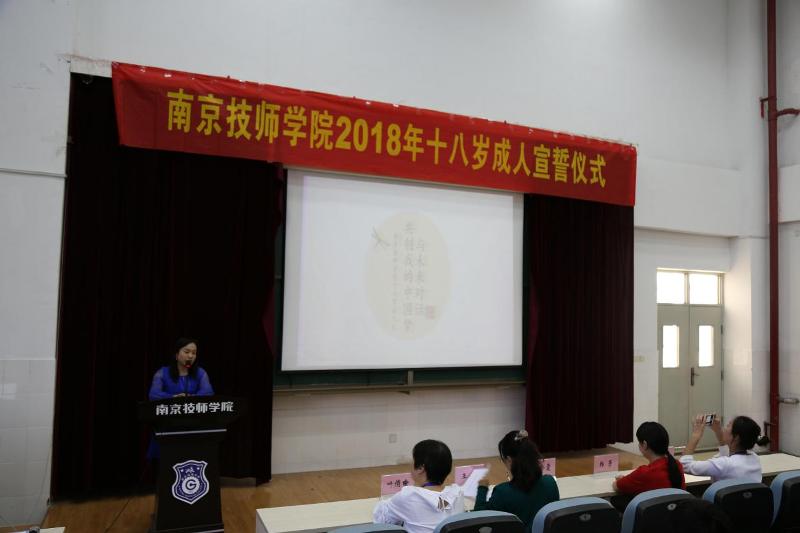成人宣誓仪式在雄壮的国歌声中拉开了序幕,全体起立奏唱国歌。在宣誓仪式的开始,院广播台的两位同学为大家朗诵了《畅谈青春弘扬工匠》,带动了全体师生的热情为接下来的活动确立了青春和成长的主题。全体与会人员共同观看了第四十四届世界技能大赛视频,作为技工学校的学生应当认识到“知识改变命运,技能成就人生”,我院师生也在为第四十五届技能大赛做出全部的努力。
