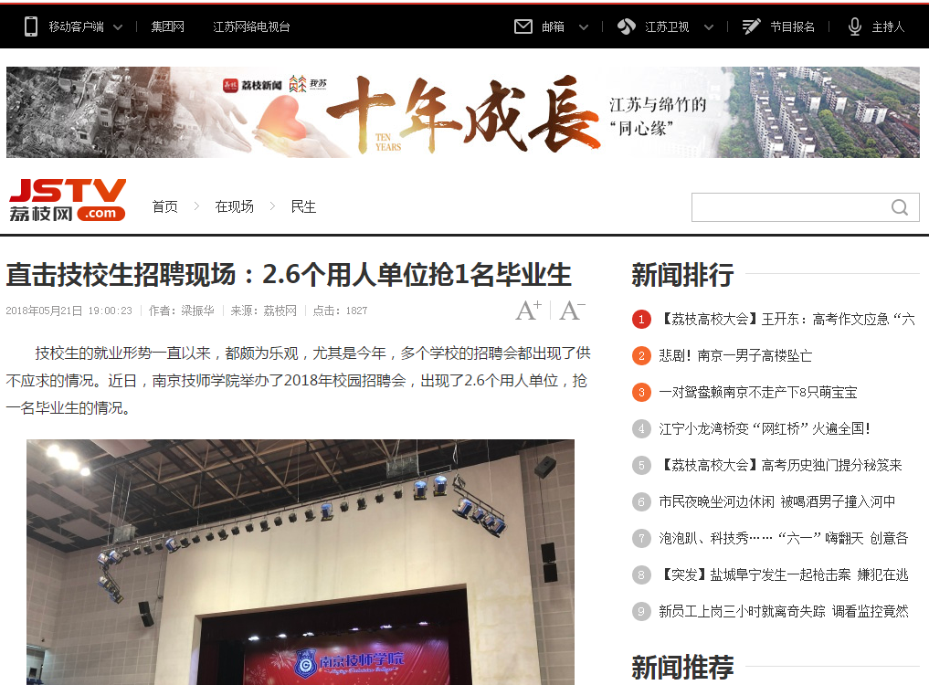 《荔枝网》-直击技校生招聘现场:2.6个用人单位抢1名毕业生