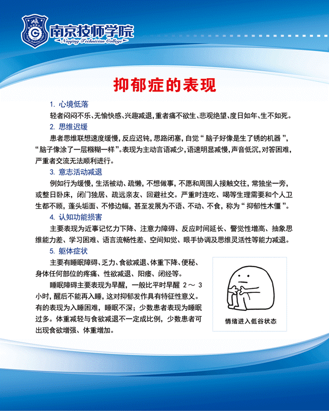 近年来学生因学习、生活、就业等压力的增大,失恋、心理失衡等原因,抑郁症的发病率明显上升。