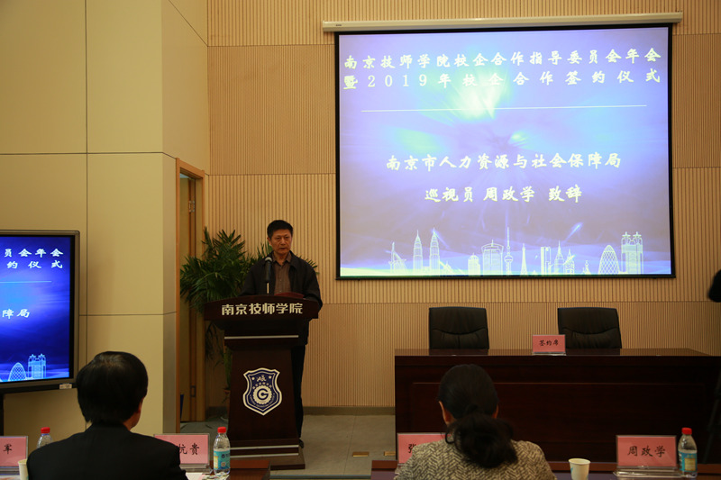 2019年4月16日,星空官方web版入口举办2019年校企合作指导委员会年会暨校企合作签约仪式。市人社局巡视员周政学、技师学院党委书记张金梅、院长侯放等院领导以及各企业单位代表参加会议。