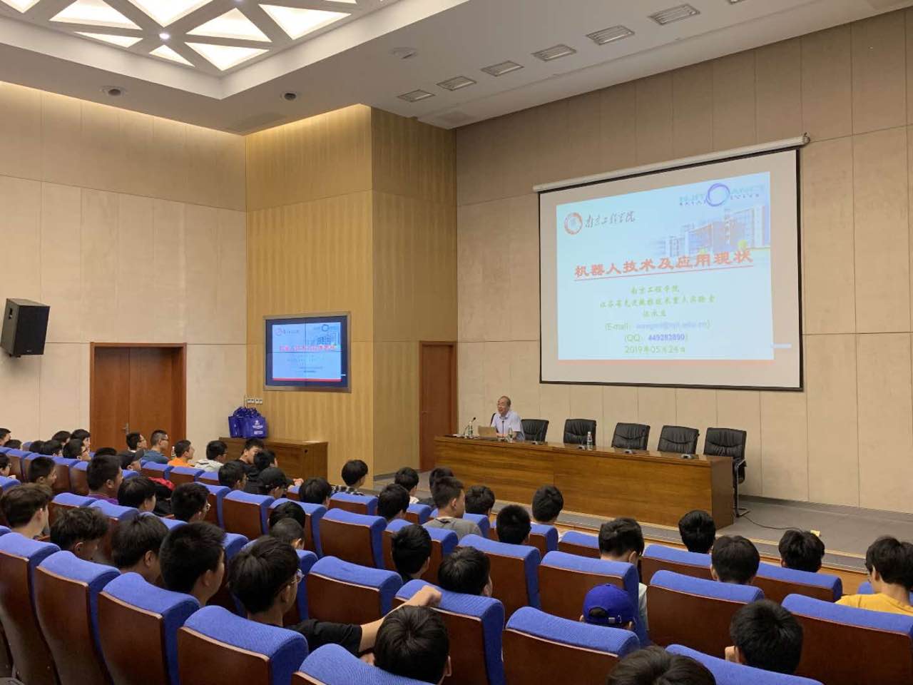 2019年5月25日上午,2019年度南京市高技能人才研修班开班仪式在我院举行。本次高研班邀请到南京工程学院汪木兰教授、南京熊猫电子装备有限公司市场部部长孙强、南京旭上数控技术有限公司高级工程师吴乐平、星空官方web版入口高级技师陈挺等4位专家为本次高研班进行现代机器人技术应用的专业讲座及技术指导。