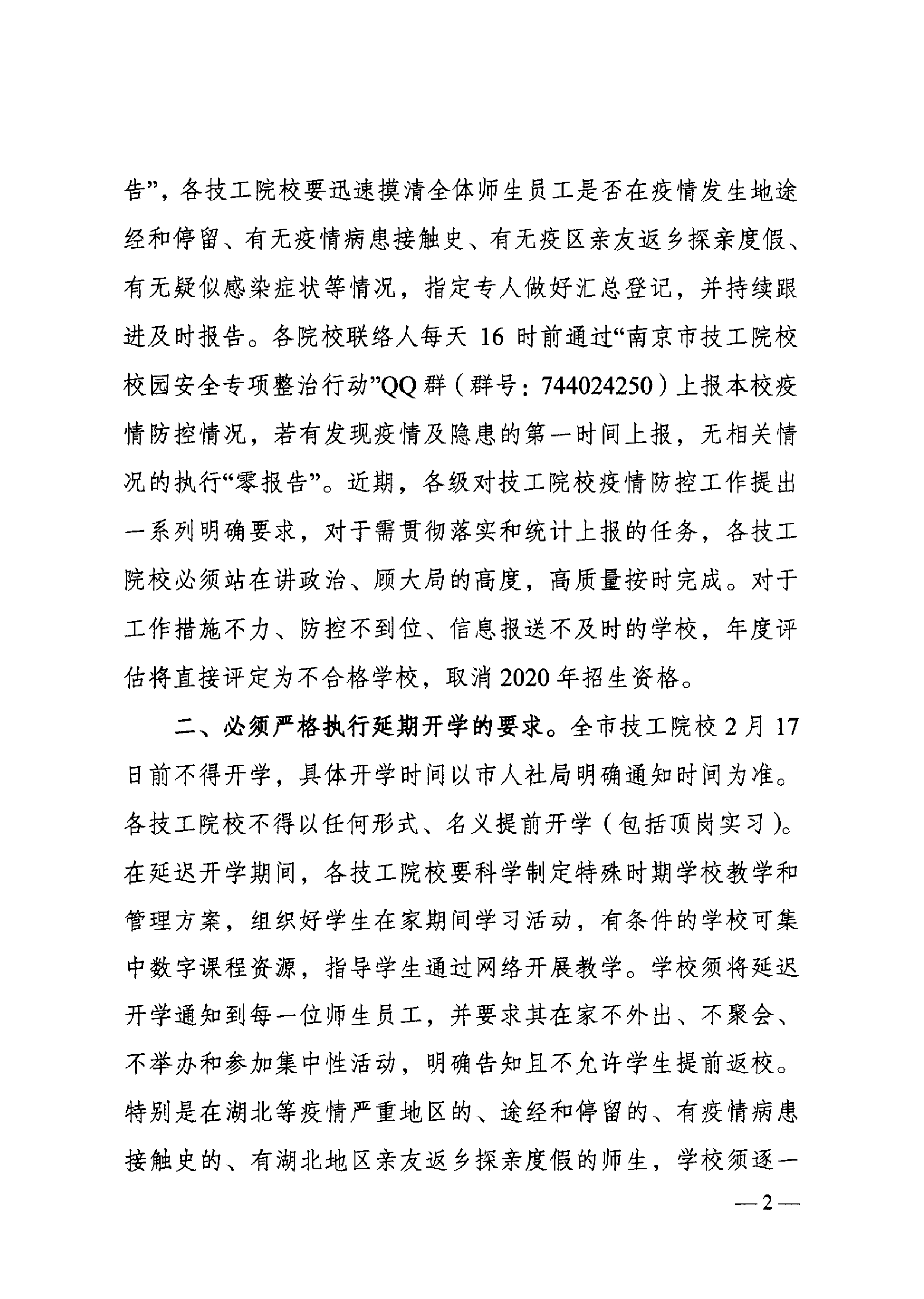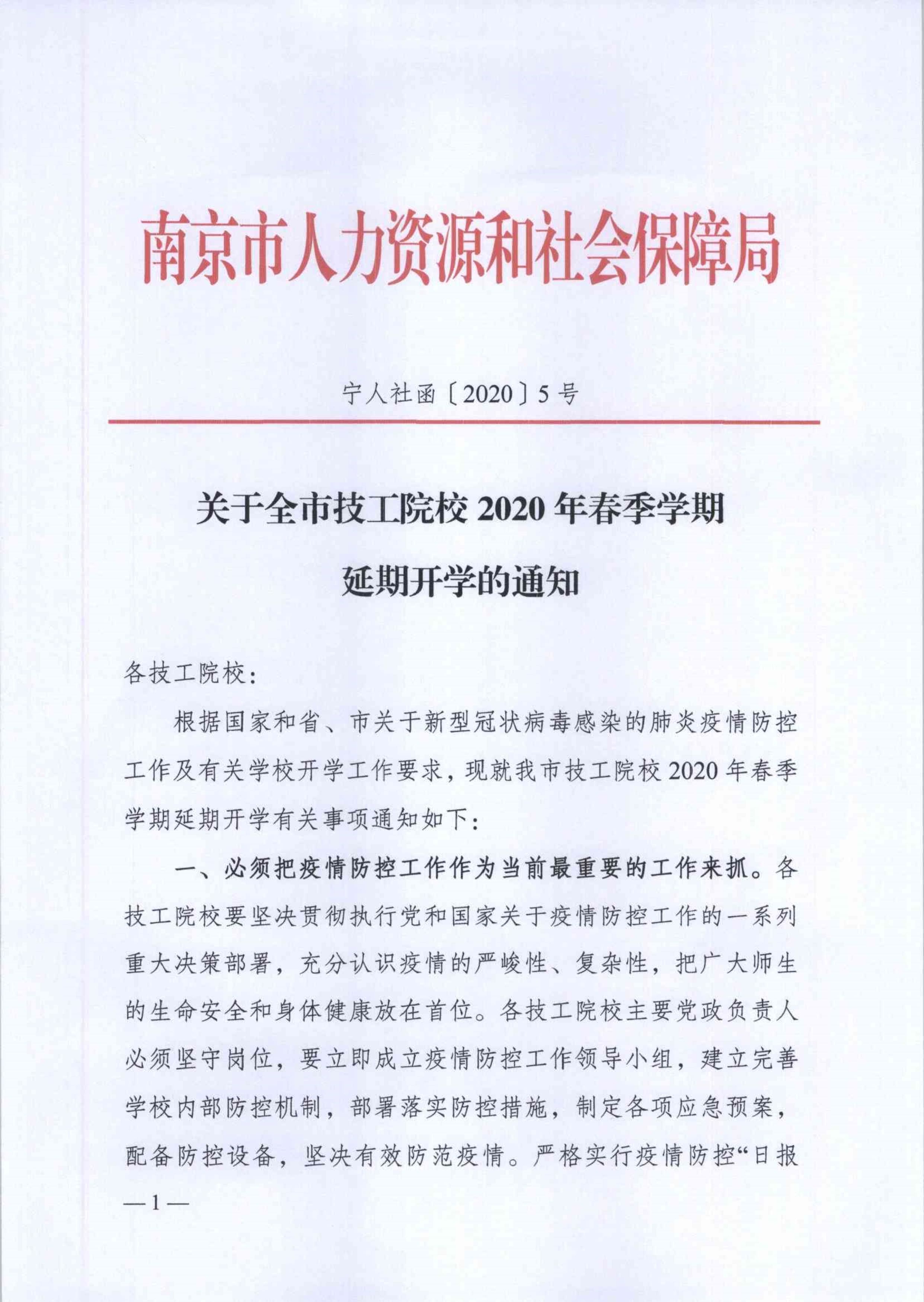 关于全市技工院校2020年春季学期延期开学的通知