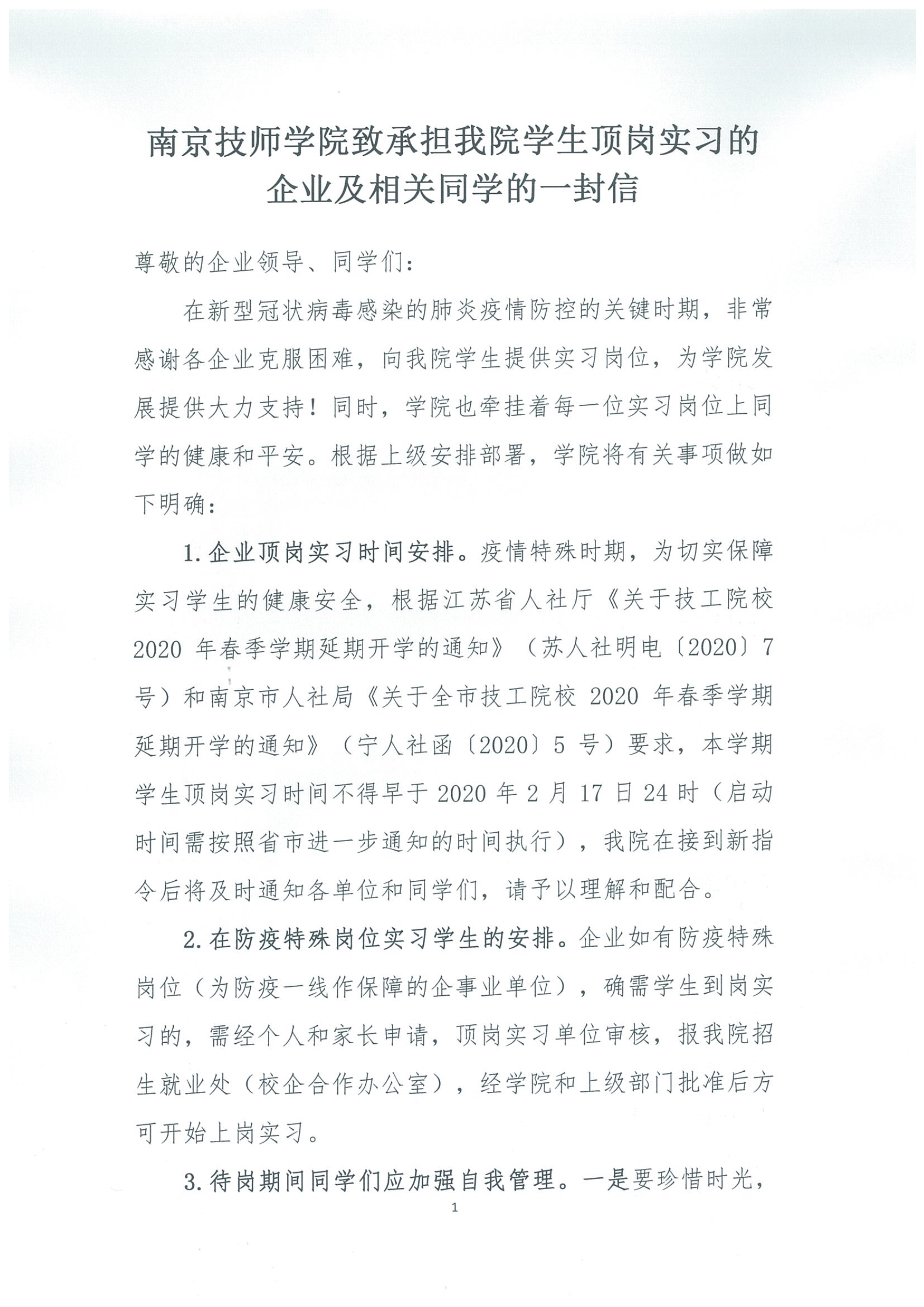星空官方web版入口致承担我院学生顶岗实习的企业及相关同学的一封信
