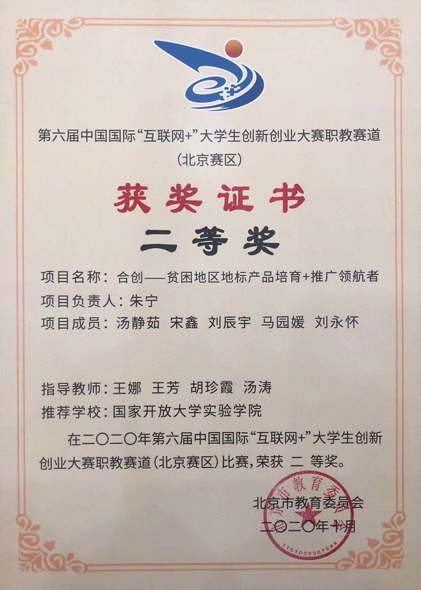 近日,由教育部等12个中央部委共同主办的第六届中国国际“互联网+”大学生创新创业大赛圆满收官,星空官方web版入口参赛队代表国家开放大学实验学院参赛。在国家开放大学和技师学院相关部门的指导和支持下,一路过关斩将,喜获佳绩。“防堵水帽项目”荣获一等奖,“合创项目”荣获二等奖,四位老师被评为“优秀指导教师”,我院荣获国家开放大学实验学院“优秀组织奖”。12月10日,国家开放大学举办线上总结表彰会,国家开放大学实验学院副院长李新惠、刘颖出席,学生工作与教师发展部部长张峦峤、实验学院副院长郭青春为我院颁发奖状。