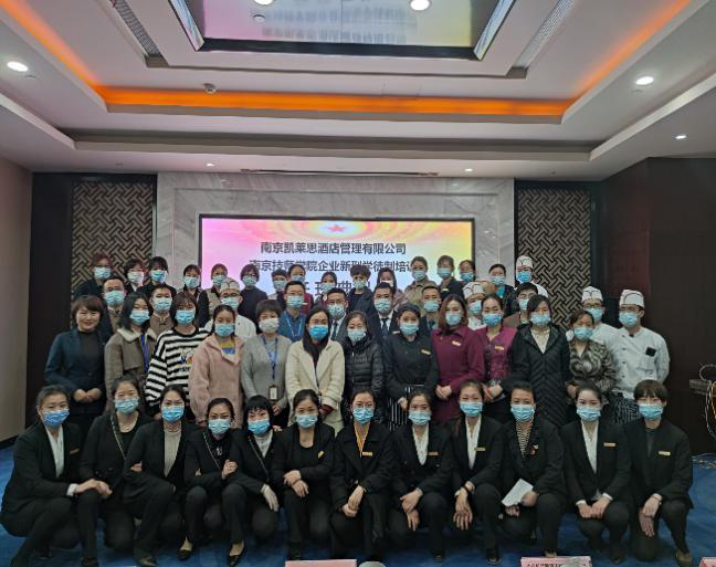 2021年1月21日下午,星空官方web版入口与南京凯莱思酒店管理有限公司(以下简称金陵新城饭店)举办了企业新型学徒制培训开班典礼。金陵新城饭店蒋茂飞总经理、杨萍、王玉范、袁万国等相关部门领导,星空官方web版入口现代服务系武剑刚主任、招生就业处郑燕副主任、现代服务系胡珍霞副主任、董昱麟、夏倩、张先梅、魏红、路钰老师及全体培训学员参加了本次开班仪式。