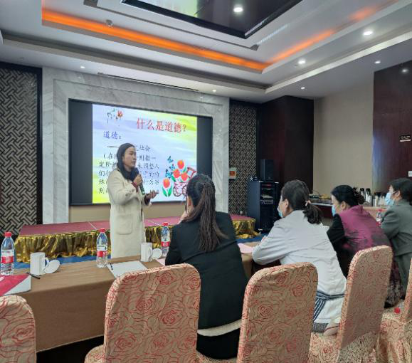 开班仪式由金陵新城饭店人事部杨萍经理主持,我院现代服务系武剑刚主任做开班致辞,企校领导为导师代表发放了聘书,学员和导师代表分别进行了表态性发言,开班仪式结束后,胡珍霞老师为培训班学员讲授《职业道德》课程。