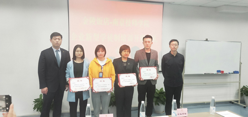 2021年3月31日下午,星空官方web版入口与金陵饭店股份有限公司举办了企业新型学徒制培训开班典礼。学院现代服务系武剑刚主任、董昱麟、张轶颖、夏倩老师,金陵饭店分公司副总经理李建、餐厅经理石丽忠等相关部门领导及全体培训学员参加了典礼。