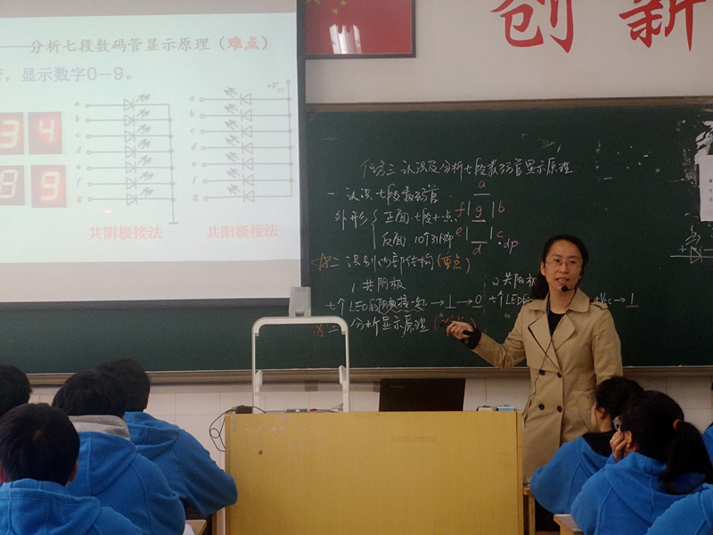 4月21日,智能制造系崔隽老师讲授了一堂精彩的院级公开课《七段数码管的显示原理》。崔老师教学语言生动有力、教学环节巧妙紧凑,教学内容由浅入深、层层递进、重点突出。尤其在讲解难点环节时,她通过互动游戏“我们来编码”分析七段数码管显示原理,让学生做中学、学中做,充分调动了学生的学习热情和积极性,取得了极佳的授课效果。