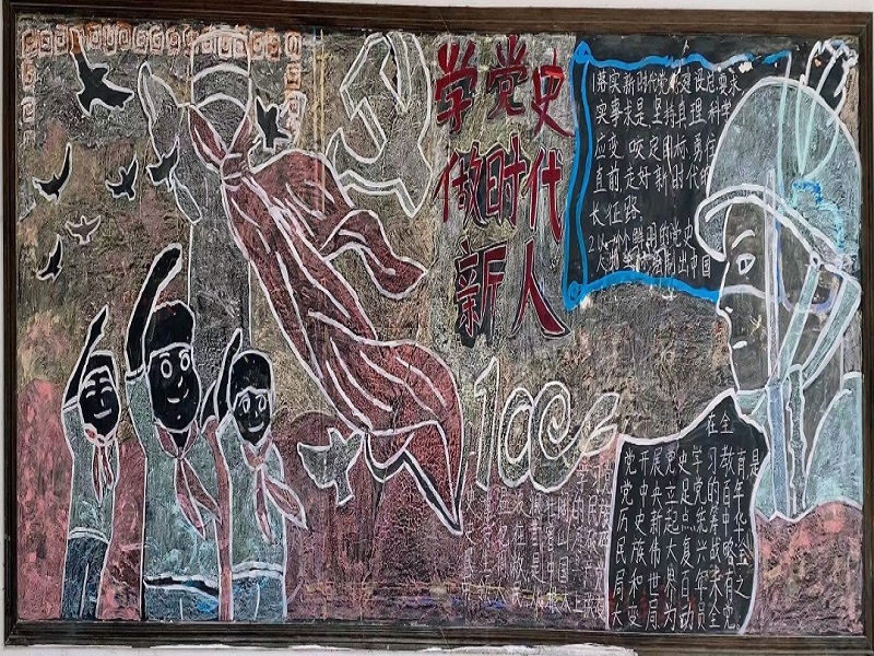 三、利用大小黑板报绘制主题为“学党史做时代新人”歌颂伟大祖国的相关图文宣传。培养学生热爱祖国、建设祖国、奉献祖国的深厚感情。
