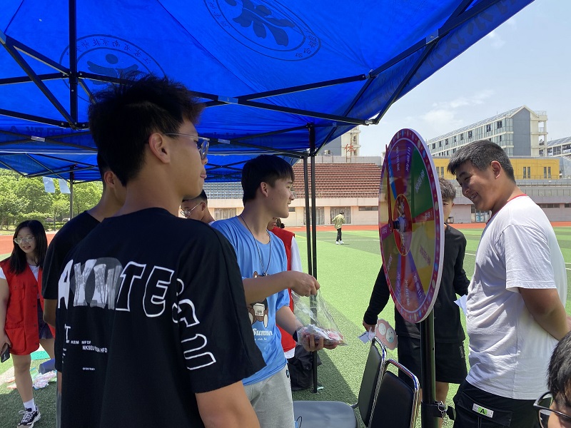 同学们手持宣传彩页,将以上各个游戏区体验过之后,盖满了章即可去兑奖区进行抽奖。