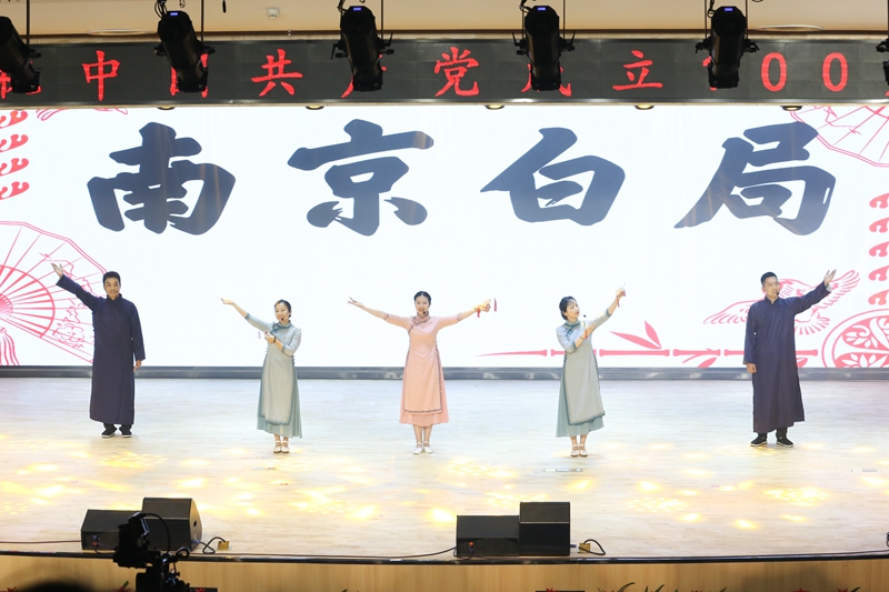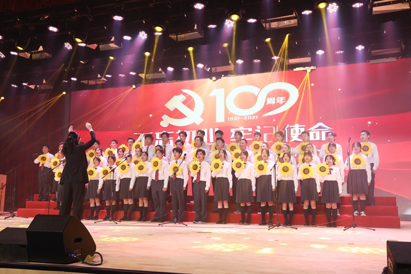 随后,全体人员共赏了师生倾力倾情打造的精彩节目。整场演出以庆祝建党100周年为主题,广大参演者通过大合唱、歌舞、情景剧、诗朗诵等不同艺术形式,将学党史的感悟融入创作,歌颂中国共产党成立百年来的光辉历程。演出在全场合唱《没有共产党就没有新中国》中圆满落幕。