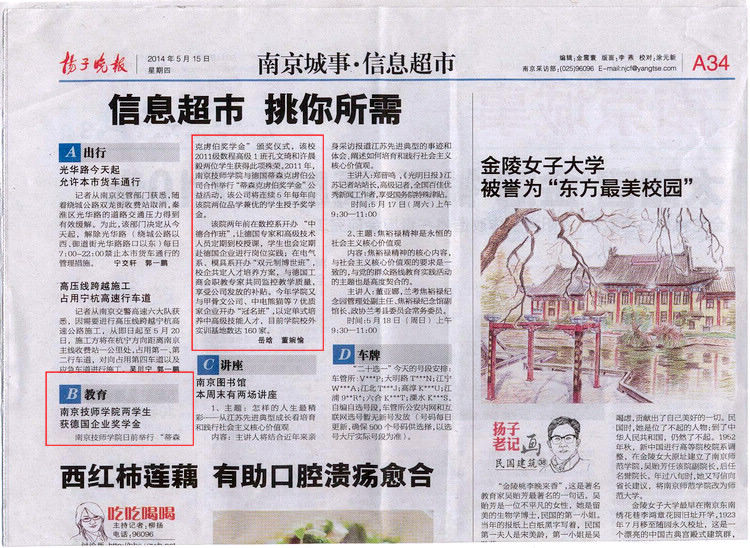 《扬子晚报》A34版—星空官方web版入口两学生获德国企业奖学金