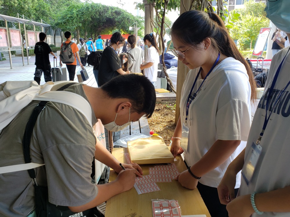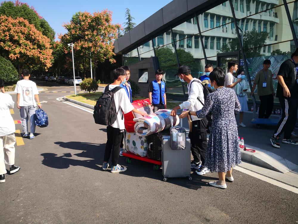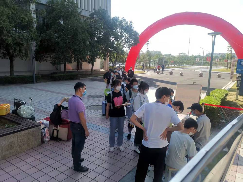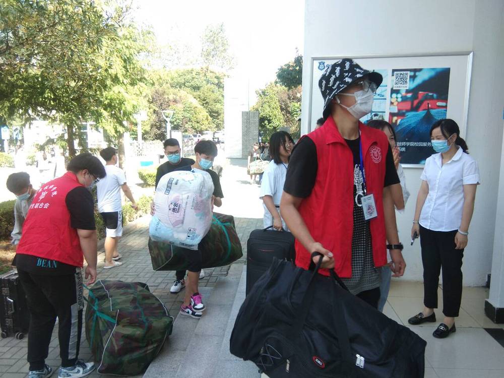 按照疫情防控常态化要求,新生进校均查验“一卡一码一表格”,严格测温、佩戴口罩,有序进入校园。为确保新生报到工作顺利进行,学院领导齐上阵,带领近200名教职工和600余名经过培训的学生志愿者共同为新生入学提供服务。新同学们一进校园,穿着标有各系铭牌马夹的学生志愿者们带着笑脸立刻主动迎上招呼,手拎肩扛行李,一路带着新同学们进入录取所在的班级。办理好入学报到手续后,志愿者们又带领新同学们购买水卡和领取寝室用具,并帮助新同学们一起将行李搬运至宿舍。炎炎烈日,到处都是志愿者们忙碌欢快的身影,汗水湿透了衣服,但他们的脸上却洋溢着学长学姐们特有的骄傲与自信。