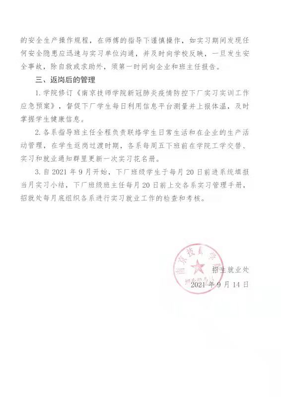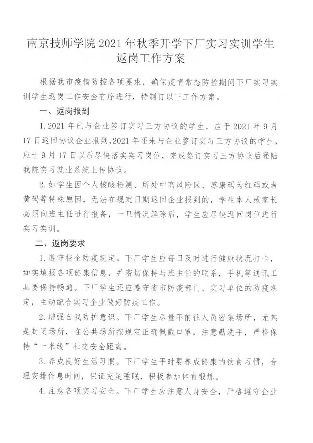 星空官方web版入口2021年秋季开学下厂实习实训学生返岗工作方案
