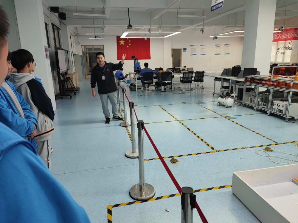 作为学院王牌专业,机电一体化技术(移动机器人方向)专业师生获得过众多国家、省市级技能竞赛奖项,并建成移动机器人项目世界技能大赛中国集训基地。在参观基地过程中,同学们被小巧灵活的机器人吸引驻足,仔细观看并认真聆听专业教师的介绍。在参观学院水处理技术项目世界技能大赛中国集训基地过程中,专业老师深入浅出的讲解和国家队选手现场实验的展示,紧紧抓住了环境保护与检测专业学生们的眼球。同样,在施耐德、西门子、费斯托以及康尼机电等校企合作实训中心,电气自动化设备安装与维修、供用电技术、工业互联网与大数据应用、光电技术应用和应用电子技术等专业的同学们在“一饱眼福”的同时,通过教师细致讲解,对所学专业的发展特色、课程体系设置和就业方向也有了充分的认知和理解。