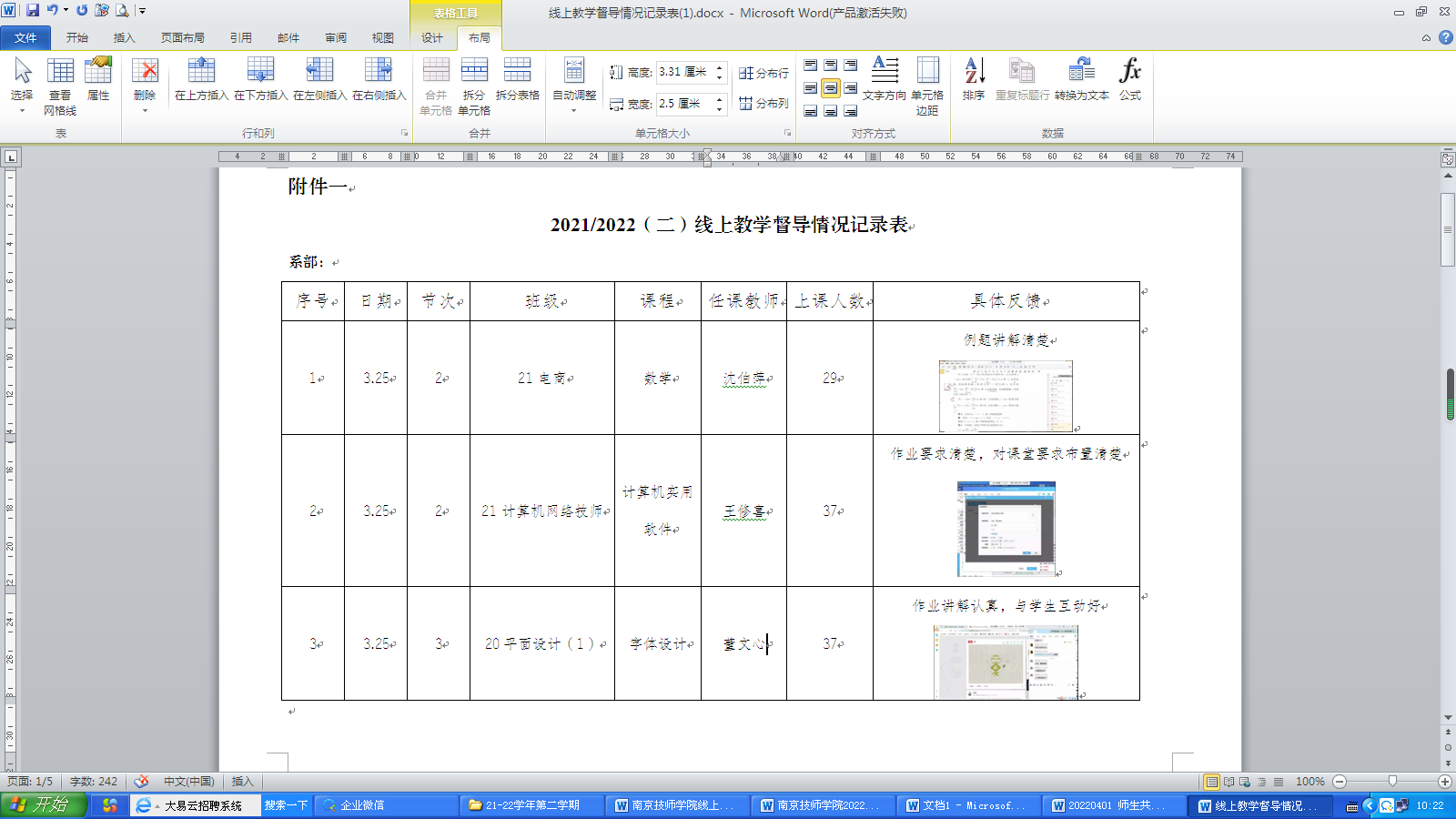 学院成立了院系二级督导,开展随机听课,确保每日班级督导率100%。针对线上课堂发现的问题,及时反馈、跟进、问题,保障了学院线上教学授课质量,减少疫情对学生学业影响。
