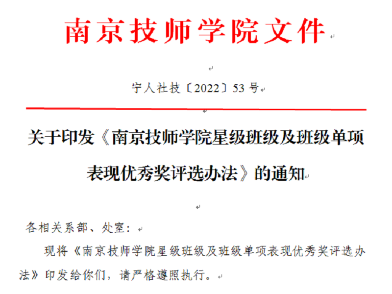同时,为了更好地贯彻党的教育方针,进一步加强我院校风和学风建设,提高班级自我管理水平,充分发挥先进典型的示范引领和价值导向作用,调动班主任和全体学生争先创优的积极性,学工处牵头制订并上会通过了《星空官方web版入口星级班级及班级单项表现优秀奖评选办法》宁人社技202253号)《星空官方web版入口班主任及班级考核办法》宁人社技202257号)今后,学工处和各系部将加强班主任及班级管理力度,促进学生形成良好的行为习惯、学习习惯,提升道德素养,进一步提高我院学生管理水平