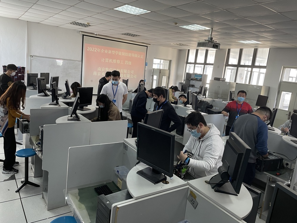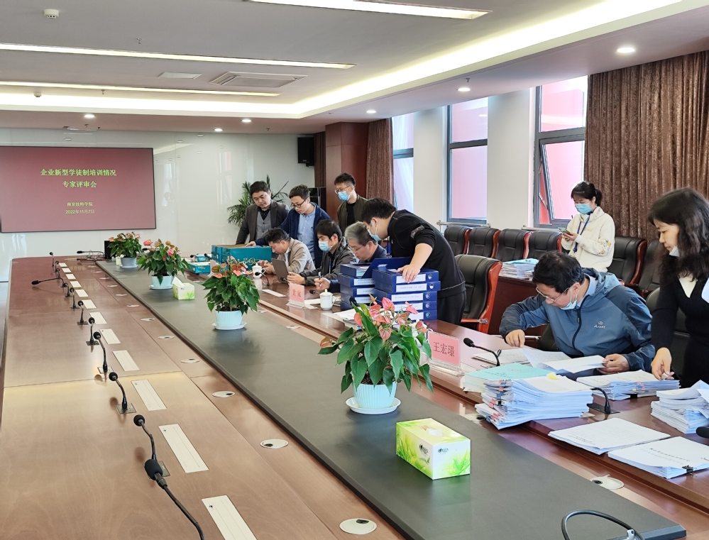 2022年11月7日南京市人力资源和社会保障局专家组来到我院,对我院2021年申报、2022年开展培训的24个企业新型学徒制项目班级开展中期检查。