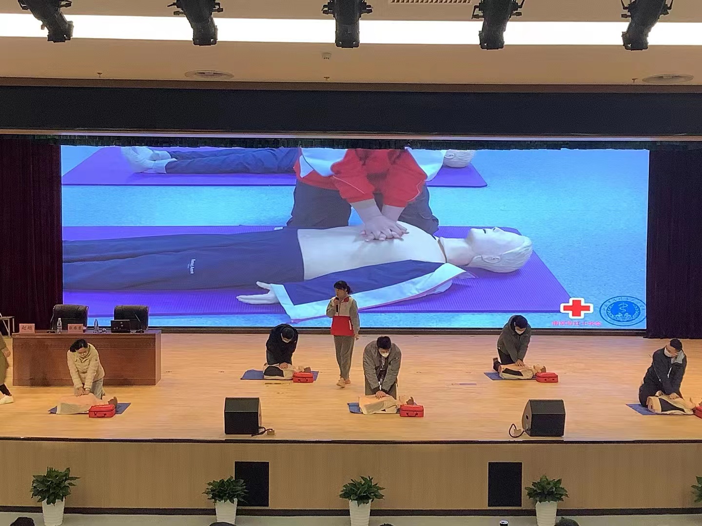 为保障全院师生生命安全,我院在医务室原有一台体外除颤仪的基础上又在宿舍区、教学区和综合实训区安装了三体外除颤仪。通过本次的培训讲座,大家了解了应急救护知识,熟悉了体外除颤仪的使用方法,为全体师生的生命健康增添一份守护。