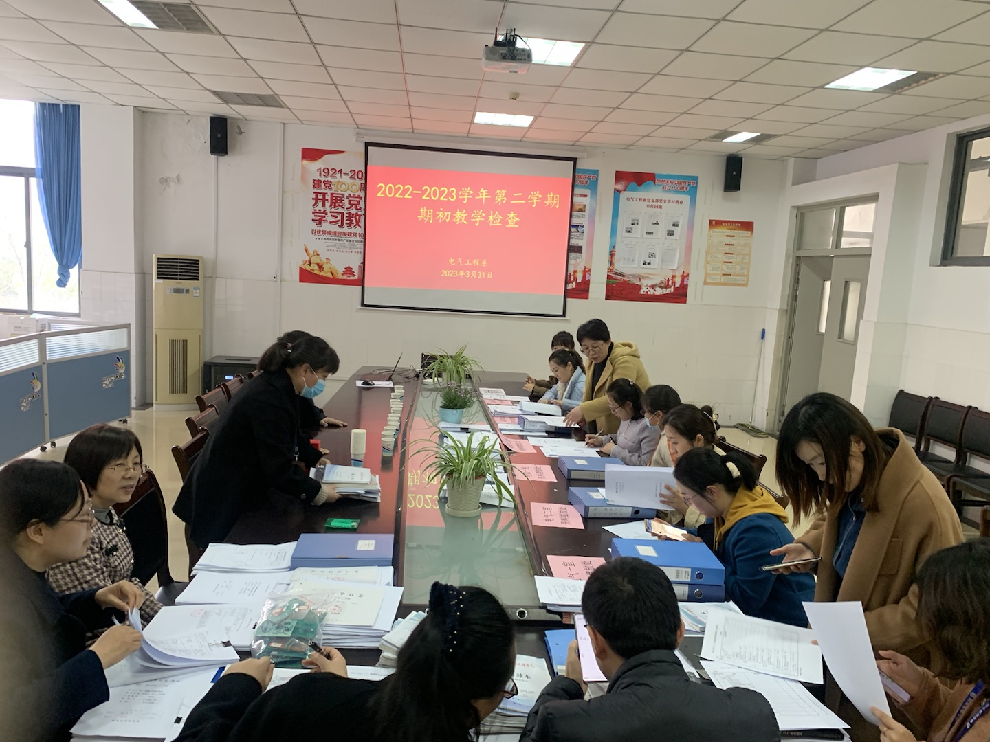 依据我院2022-2023学年第二学期教学工作安排,3月31日教务处牵头,协同督导处,各系部教学主任进行分组互查,检查内容对照市技工院校高质量发展评估指标体系结合学院制定的检查细则依次对各系部基础台账、教学资料、教研室工作、新教师培养、教师个人五点一线资料等工作开展。
