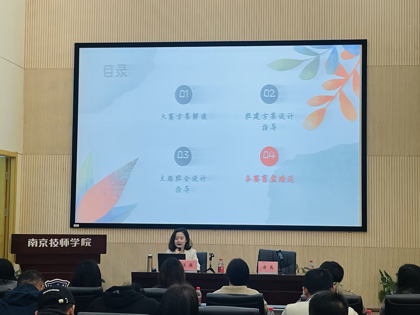 随后,来自南京交通技师学院的专家王薇老师为大家做了精彩的培训,她的培训分为两个部分,上午是大赛方案解读与班建方案设计指导,下午是主题班会设计与现场答辩指导。王老师不仅对班主任赛的发展与意义进行了深入解读,使大家对比赛有了更加清晰的认识。同时,她也详细比较了市赛与国赛、省赛的规则差异,使参赛选手对比赛要求有了更加明确的了解。培训过程中,王老师还结合自己丰富的实践经验和成功案例,为大家提供了许多宝贵的建议和方法。