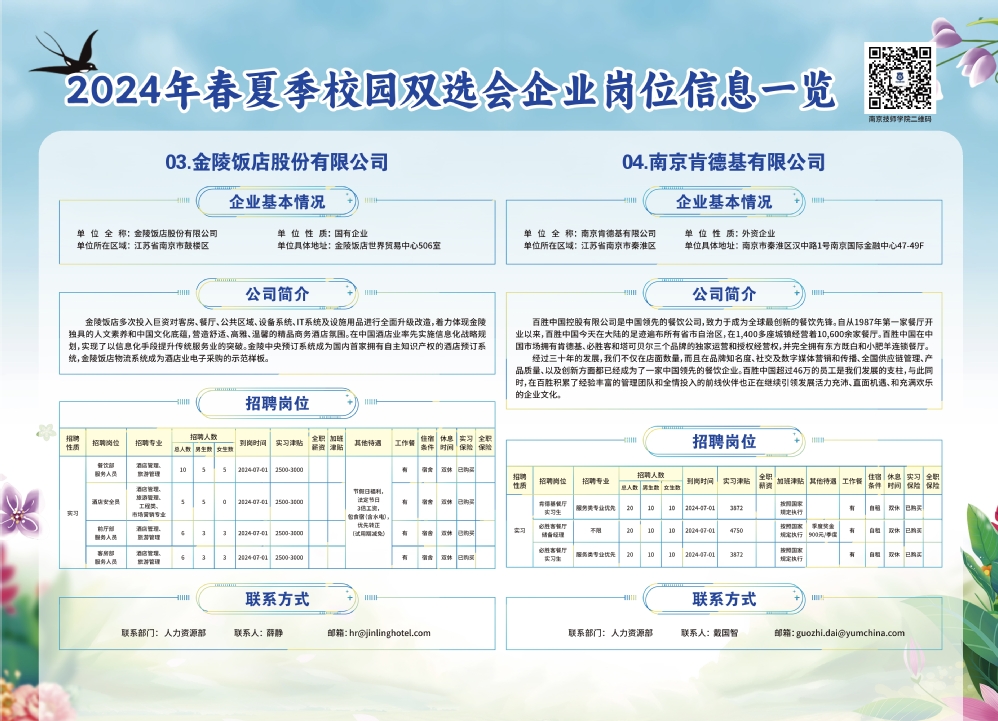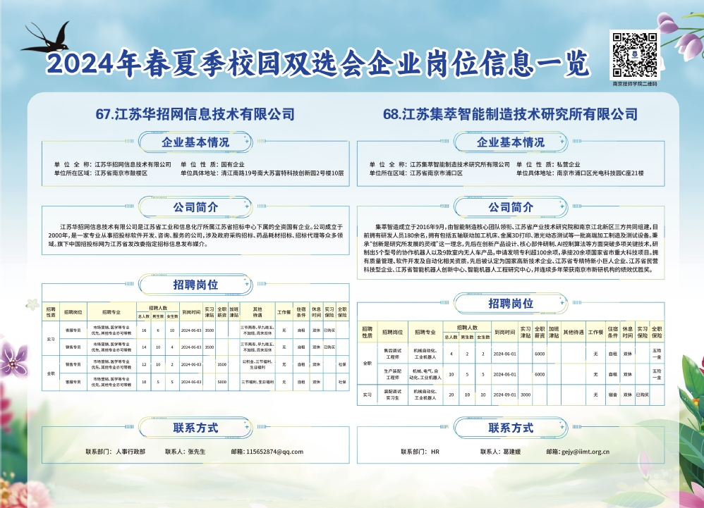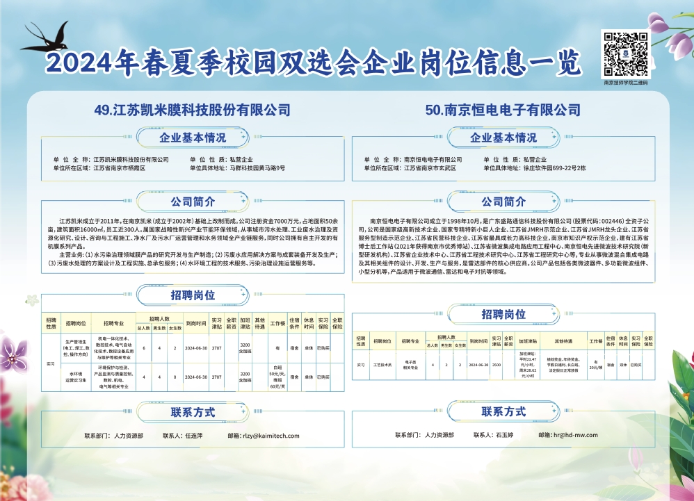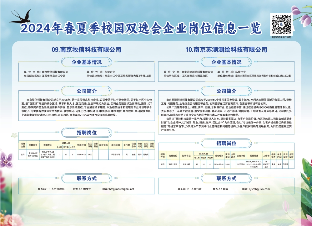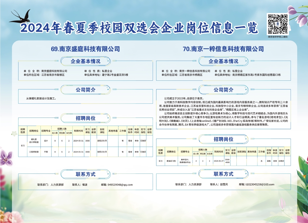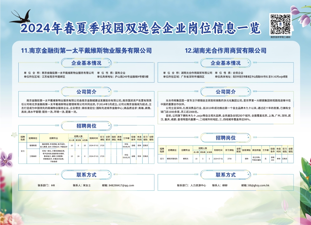2024年春夏季校园双选会企业实习岗位信息一览