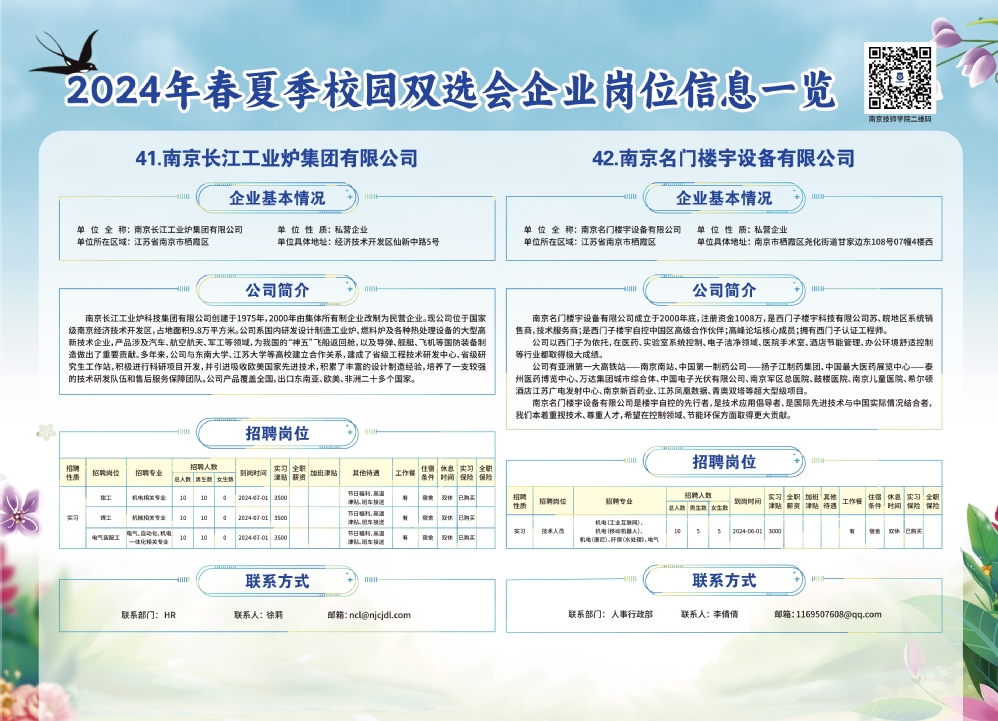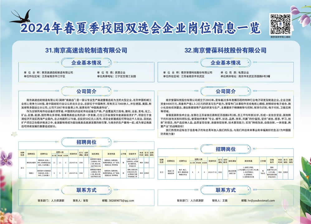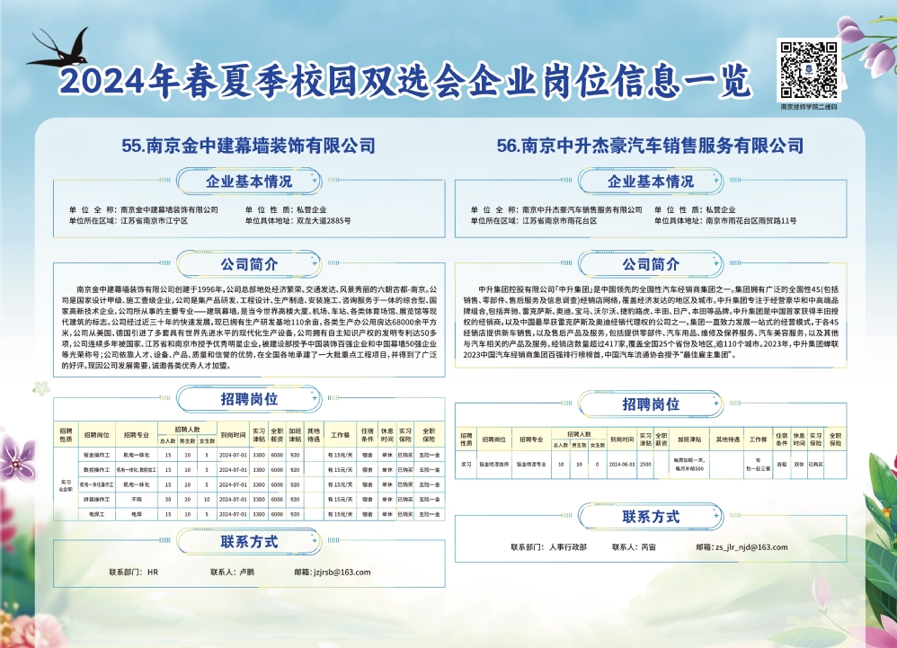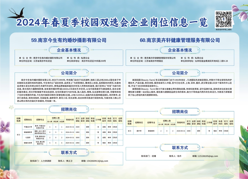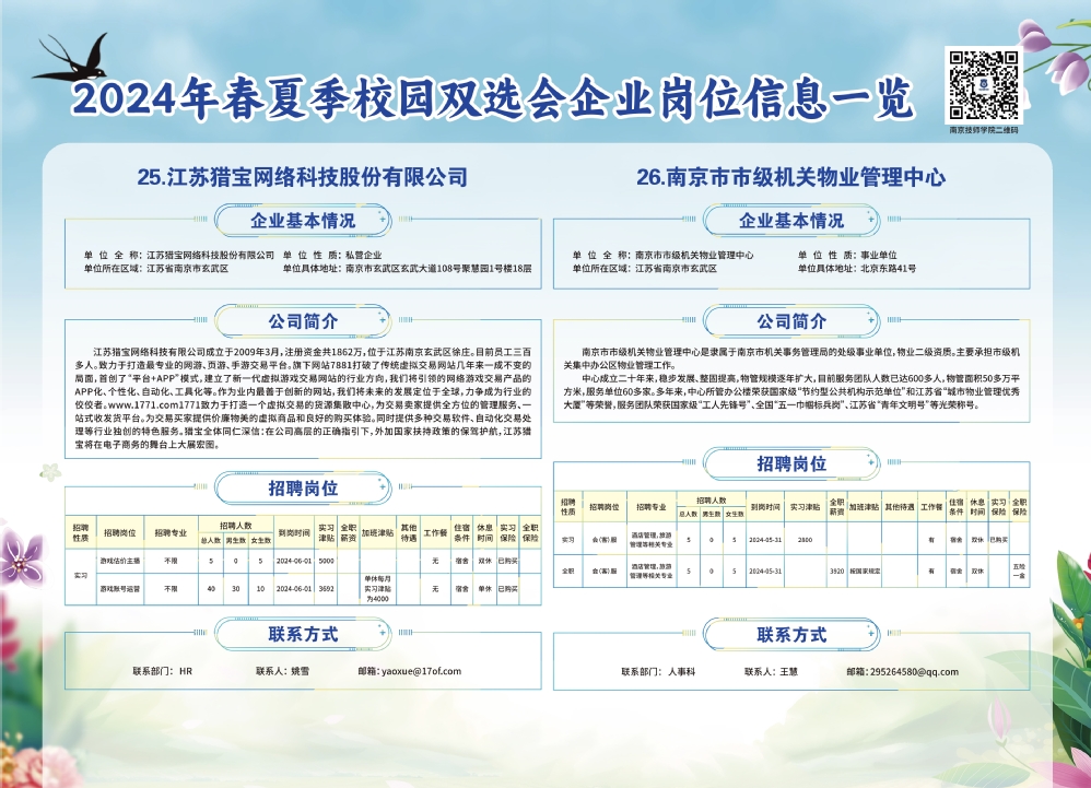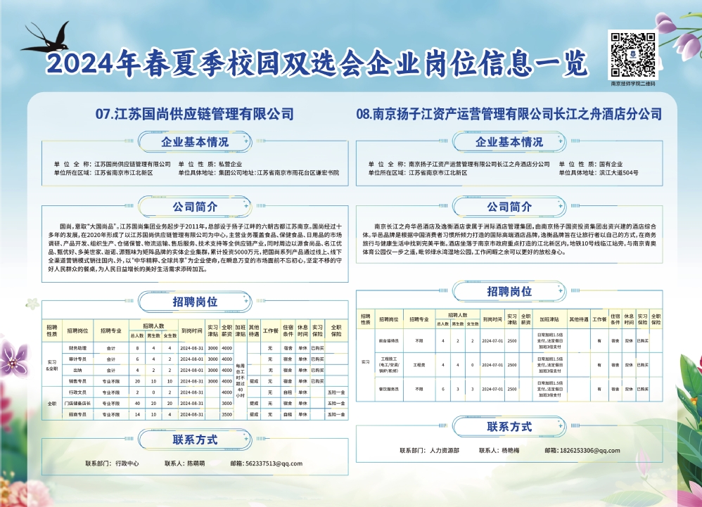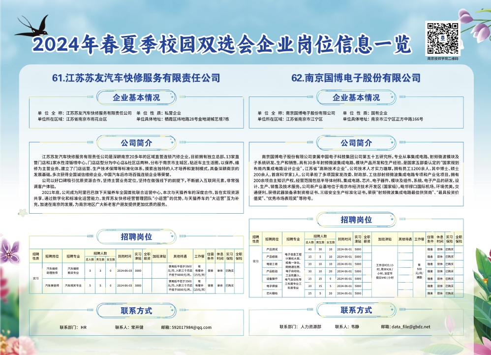2024年春夏季校园双选会企业实习岗位信息一览