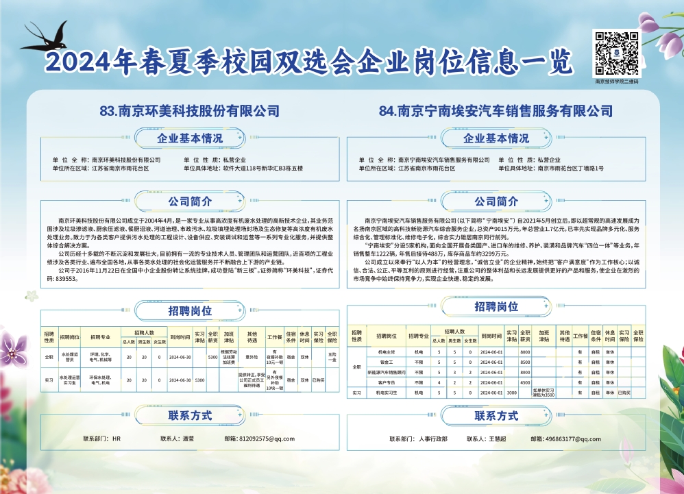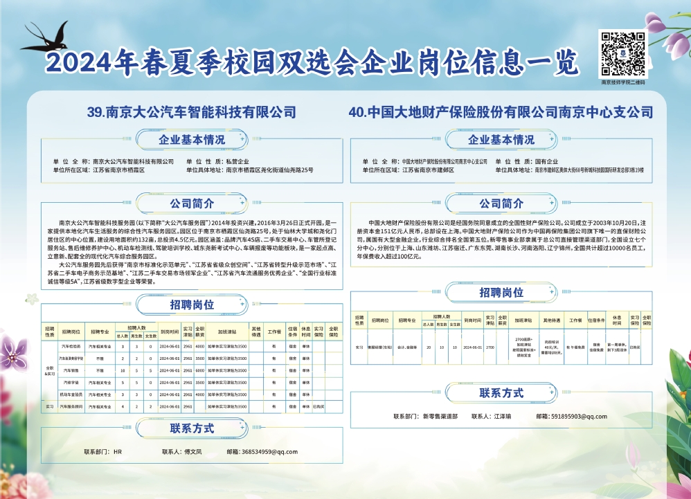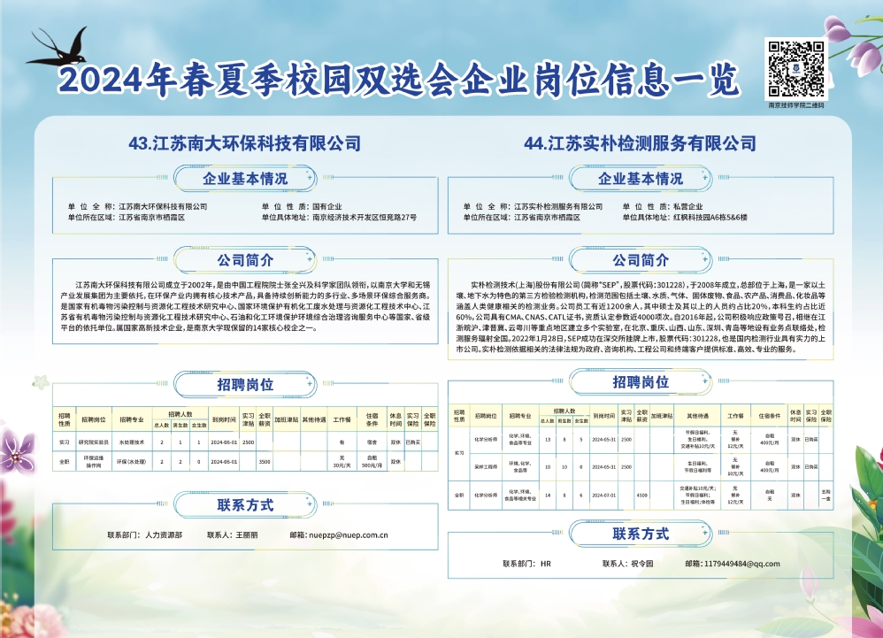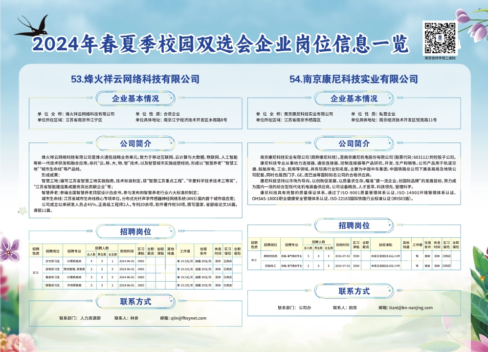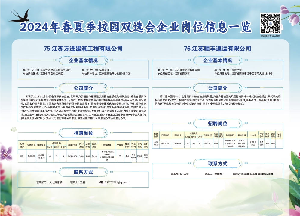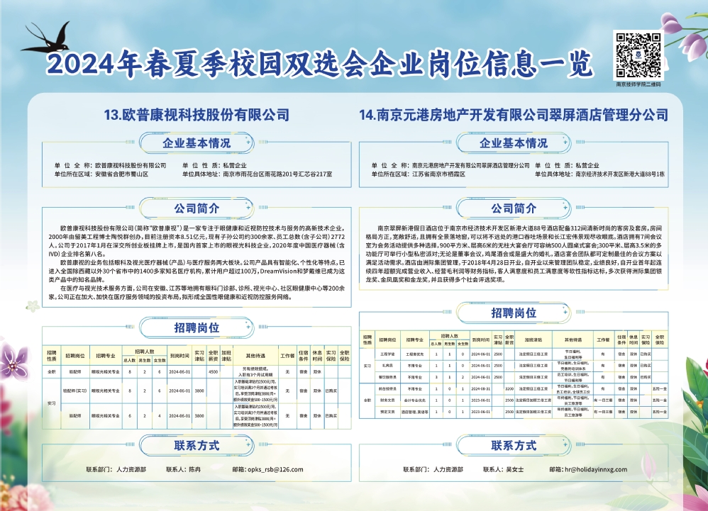2024年春夏季校园双选会企业实习岗位信息一览