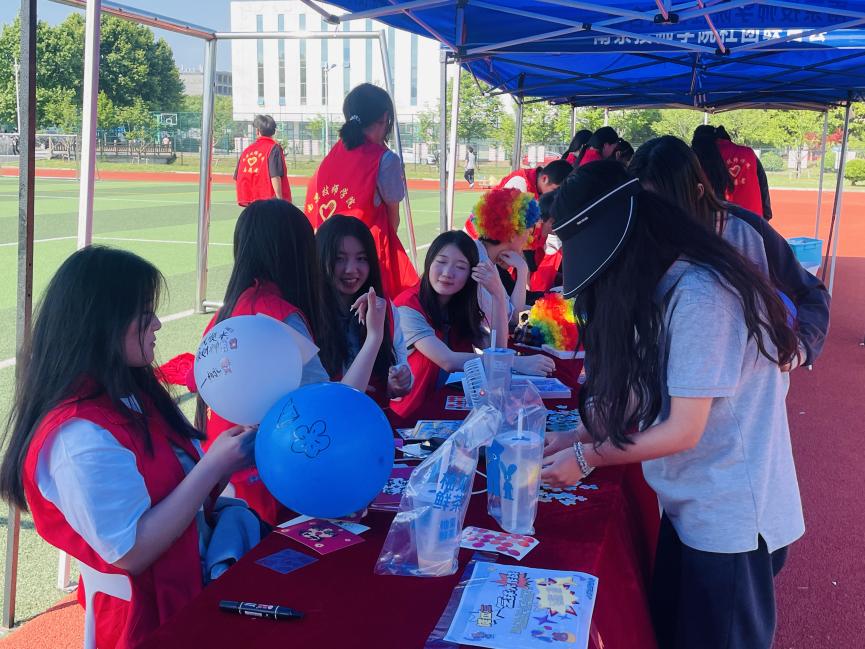 活动现场精心布置了八个摊位,每个摊位都围绕心理健康主题,设置了富有创意和趣味性的小游戏,包括心愿寄语、壶中球胜等。同学们热情高涨,纷纷参与到游戏中,通过挑战自我、互动交流,不仅收获了快乐,还学到了许多心理健康知识。