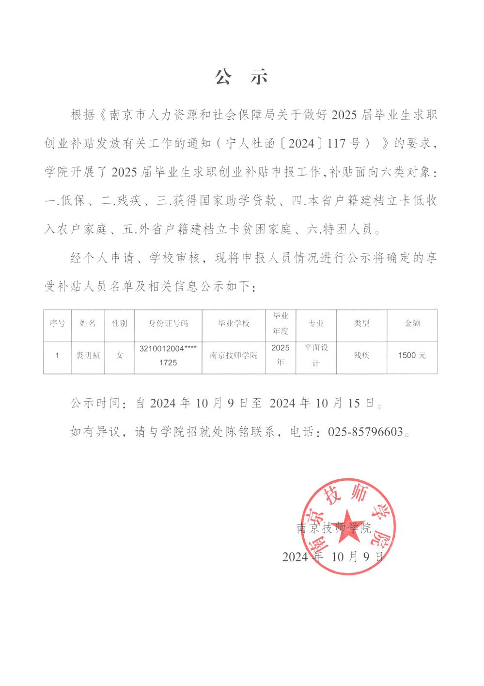 2025届毕业生求职创业补贴申报公示(一)