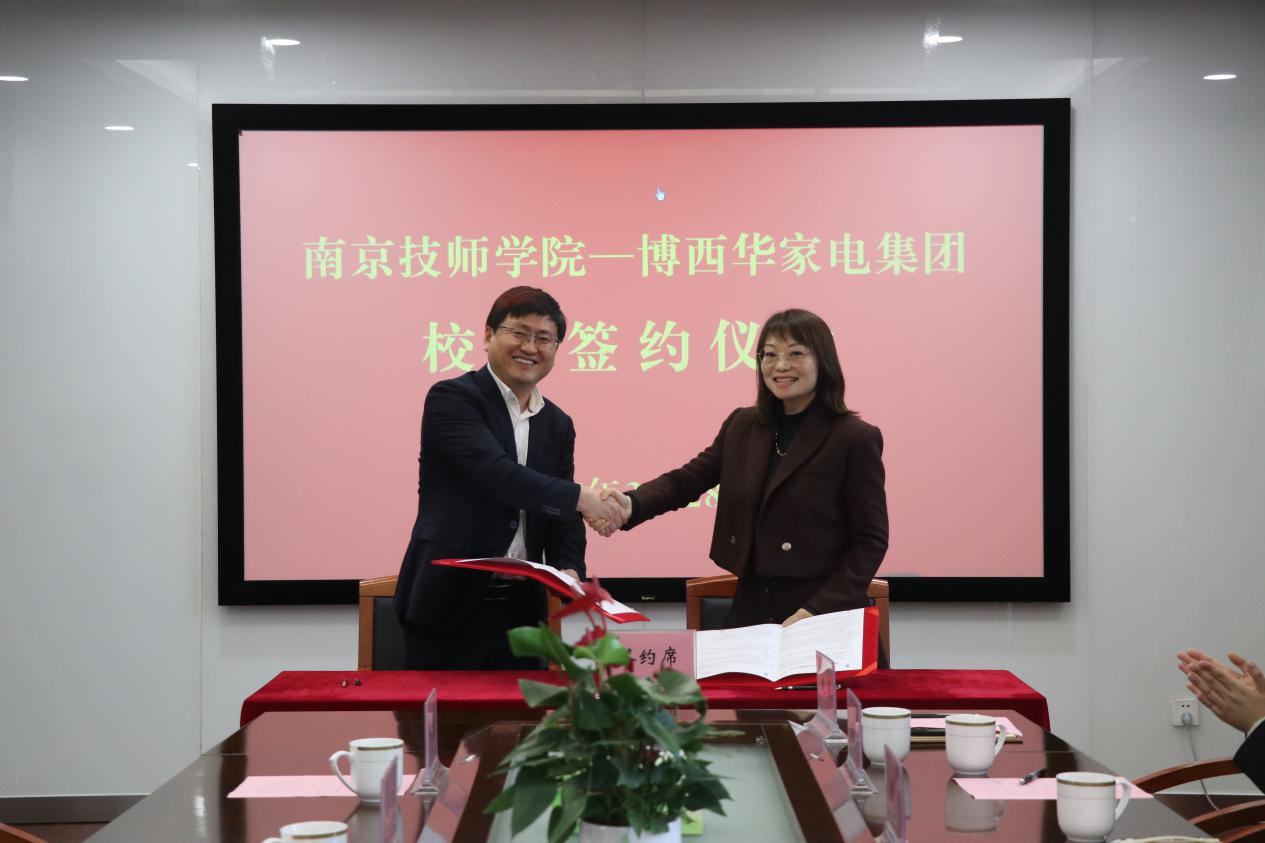 学院院长侯放、副院长赵杰、徐建华及相关部门负责人,博西华电器(江苏)有限公司董事长姚勇、博西家用电器投资(中国)有限公司大中华区人力资源副总裁田晶等8位企业方领导出席了本次签约暨揭牌仪式。会议由副院长赵杰主持。