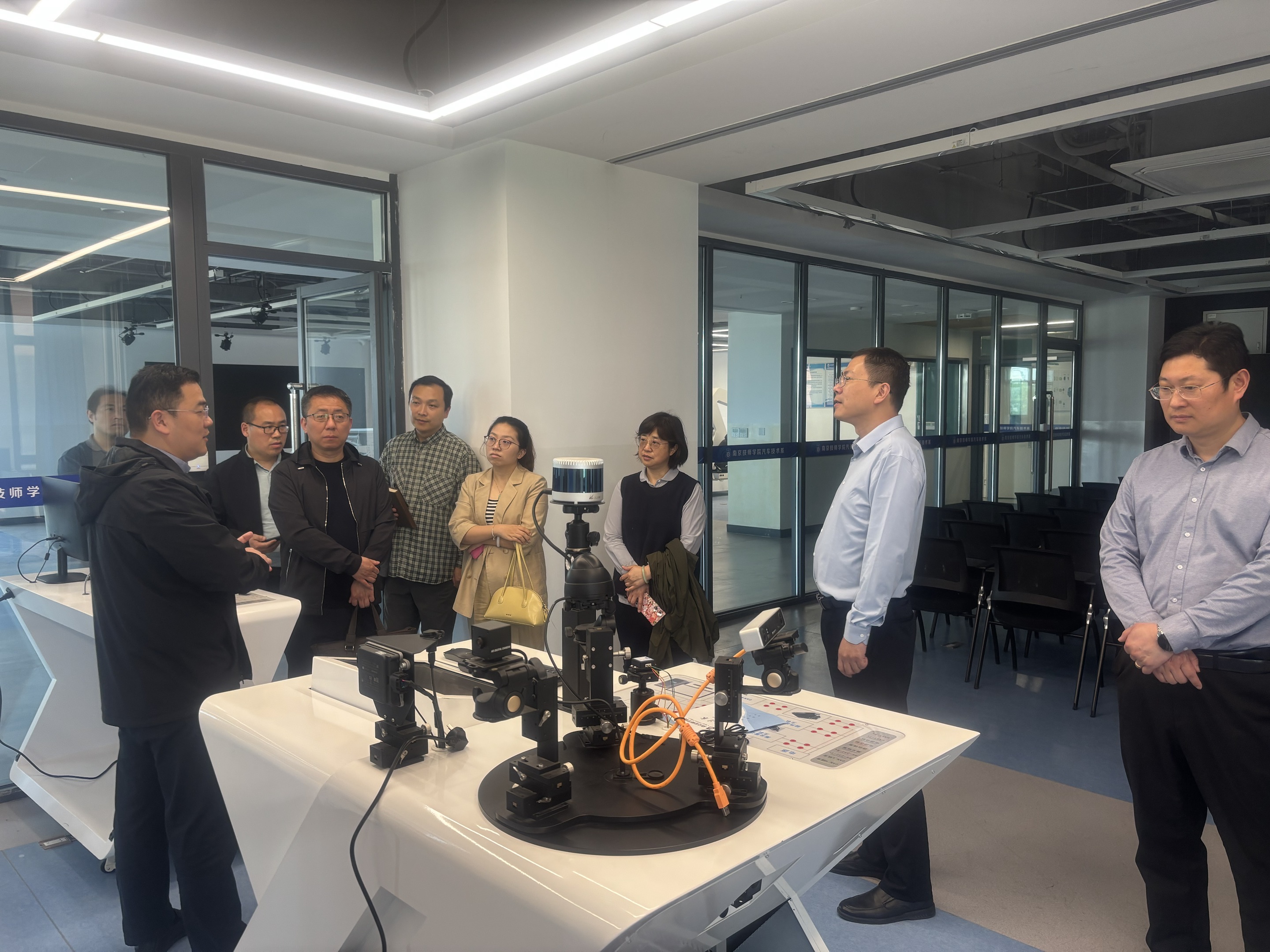 贵院参观交流团队首先参观了我院的心理团体辅导室和心理沙盘室,对学院心理健康教育的硬件设施和环境布置给予了高度评价。随后,一行领导参观了先进制造与服务教学实训中心,深入了解了实训中心的功能布局、设备配置以及实践教学开展情况。