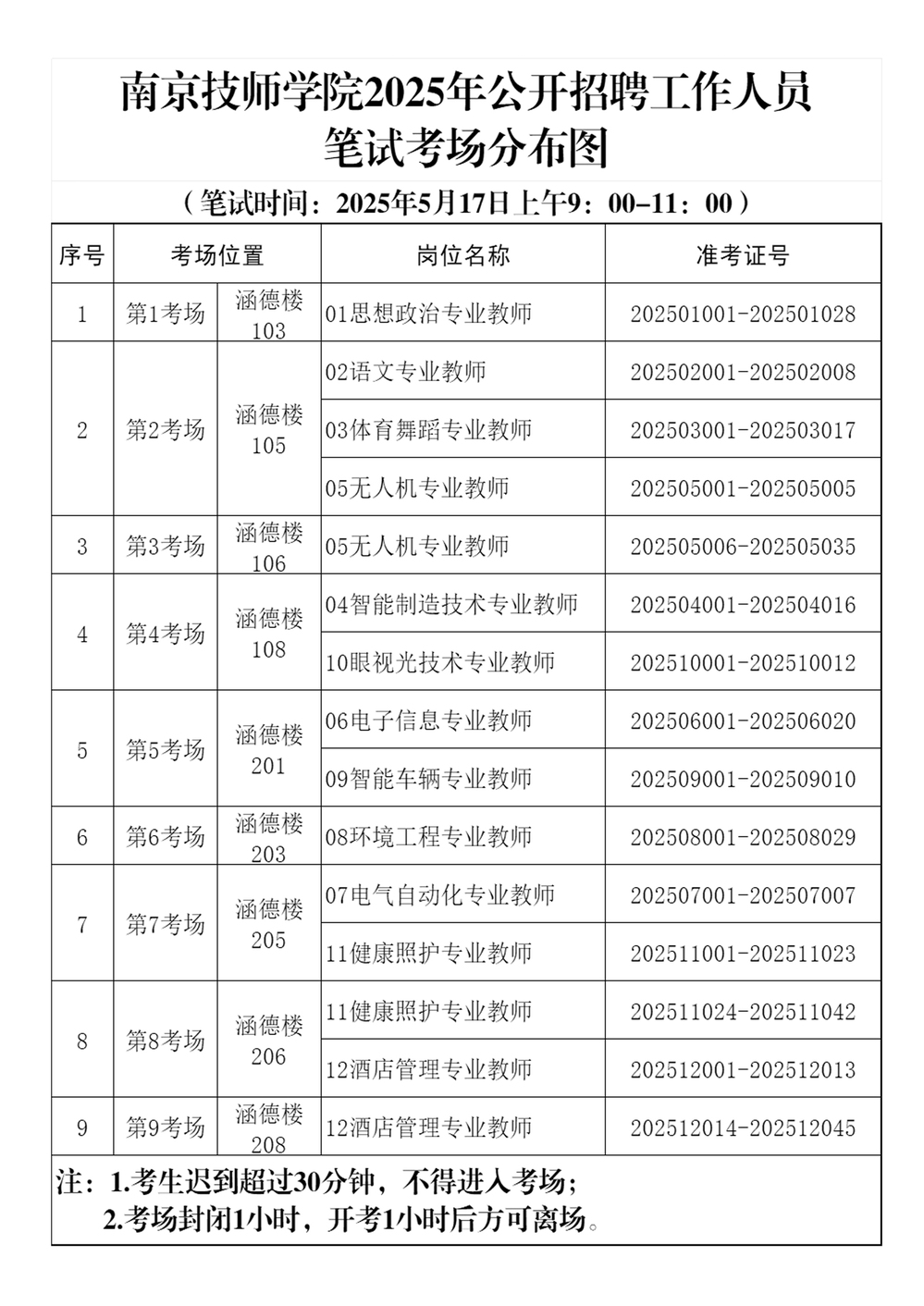星空官方web版入口2025年公开招聘工作人员笔试考场分布图