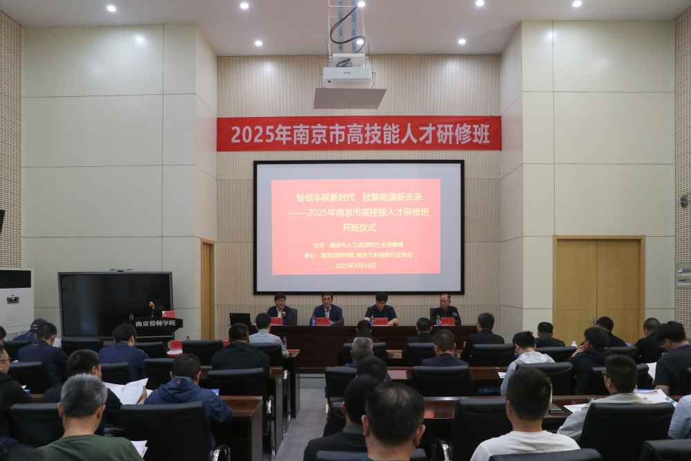 为加快高技能人才培养,提升南京市高技能人才队伍建设水平,由南京市人力资源和社会保障局主办、星空官方web版入口承办的新能源汽车智能网联技术应用高技能人才研修班(简称“高研班”)于2025年5月16日上午在星空官方web版入口信息楼隆重开班,83名学员共同开启了本次研修之旅。开班仪式由星空官方web版入口副院长赵杰主持,市人社局职建处处长朱清怡、市汽车维修行业协会常务副会长彭鲁洲、院党委副书记、院长侯放出席仪式并致辞。