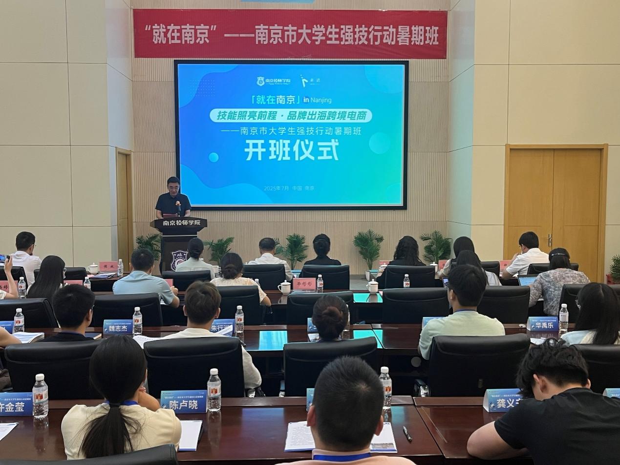 为认真贯彻部、省、市“技能照亮前程,强企稳岗惠民”培训行动要求,通过开展大规模职业技能培训实现离校未就业高校毕业生等重点群体高质量充分就业,7月14日,学院“品牌出海,跨境电商”培训班顺利开班,29名离校未就业高校毕业生参加本次培训。开班仪式由学院院长侯放主持,市人社局、市职业技术培训指导中心、市劳动就业服务管理中心、栖霞区人社局等相关部门领导及合作单位、学院领导出席。