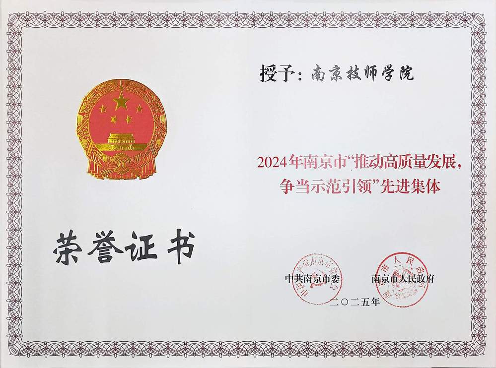 星空官方web版入口被南京市委、南京市人民政府授予“推动高质量发展,争当示范引领”先进集体称号